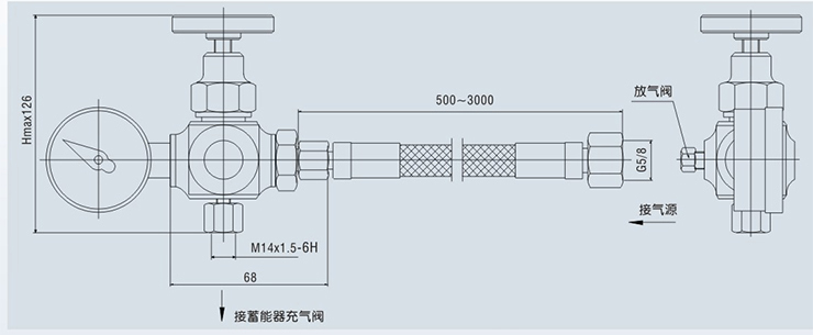 ?、?nbsp;如對(duì)充氣工具還有特殊要求時(shí)(如隔膜式蓄能器需要的充氣工具、進(jìn)口蓄能器需要的充氣工具等),請(qǐng)與本公司商洽。