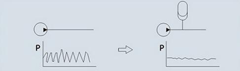 The accumulator absorbs the mechanical vibration for the gas in the accumulator works as spring to reduce the impact and vibration of vehicle。